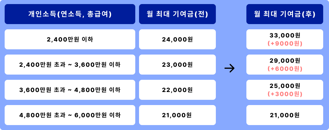 연소득에 따라 초과되는 기여금을 지금 받지 못한다는 여러 지적 탓인지 2025년 올해부터 크게 개편됩니다.