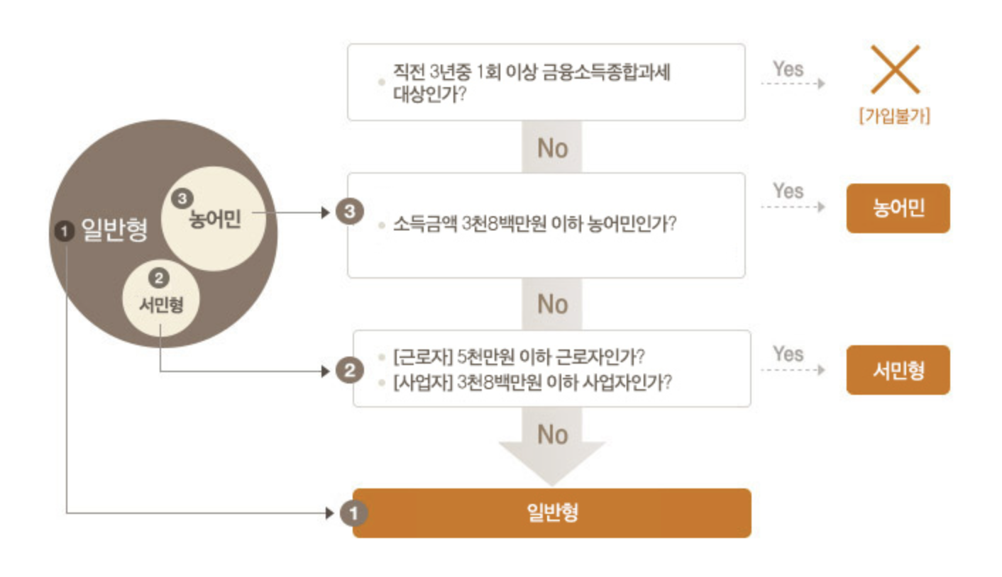 - 일반형: 19세 이상 거주자, 15세 이상 19세 미만 근로소득자